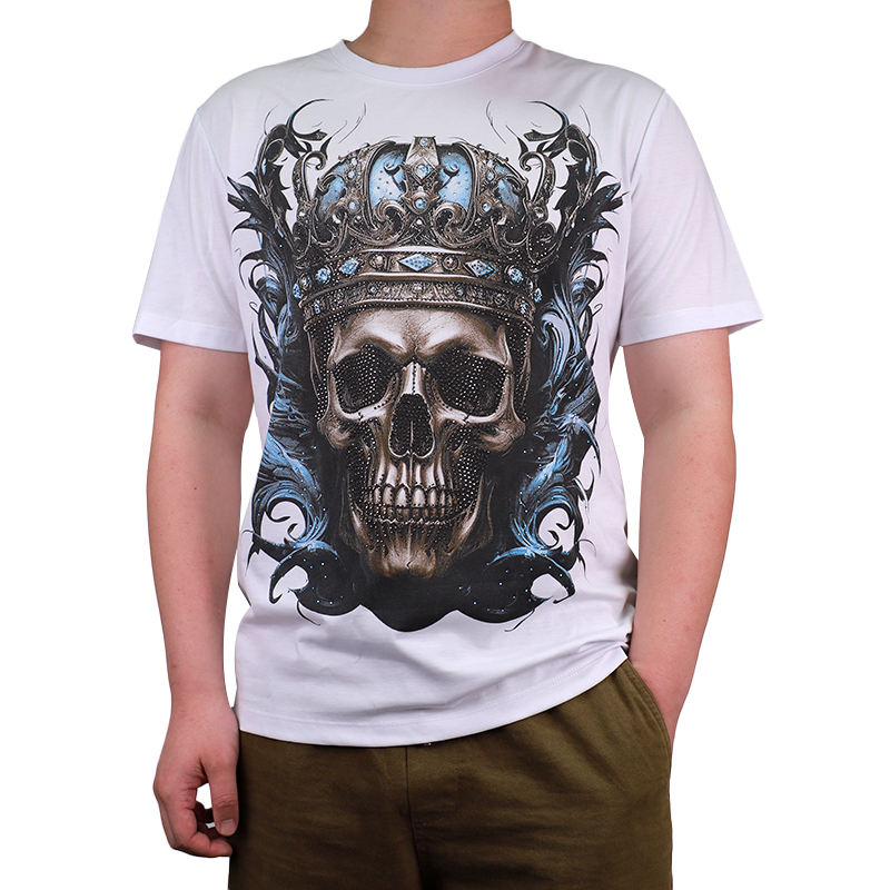 Camiseta de peso pesado con diamantes de imitación para hombre, camiseta de gran tamaño personalizada con logotipo e imagen, Camisetas estampadas para hombre