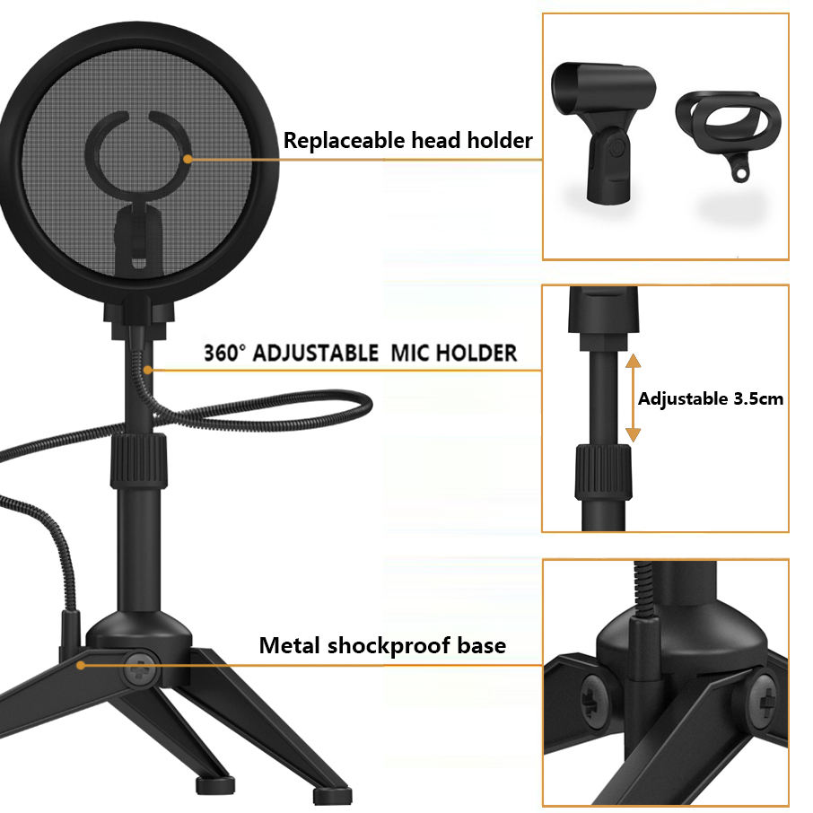 Soporte de Micrófono Ajustable en Altura con Filtro Antipop para Grabación Musical, Juegos y Podcasts
