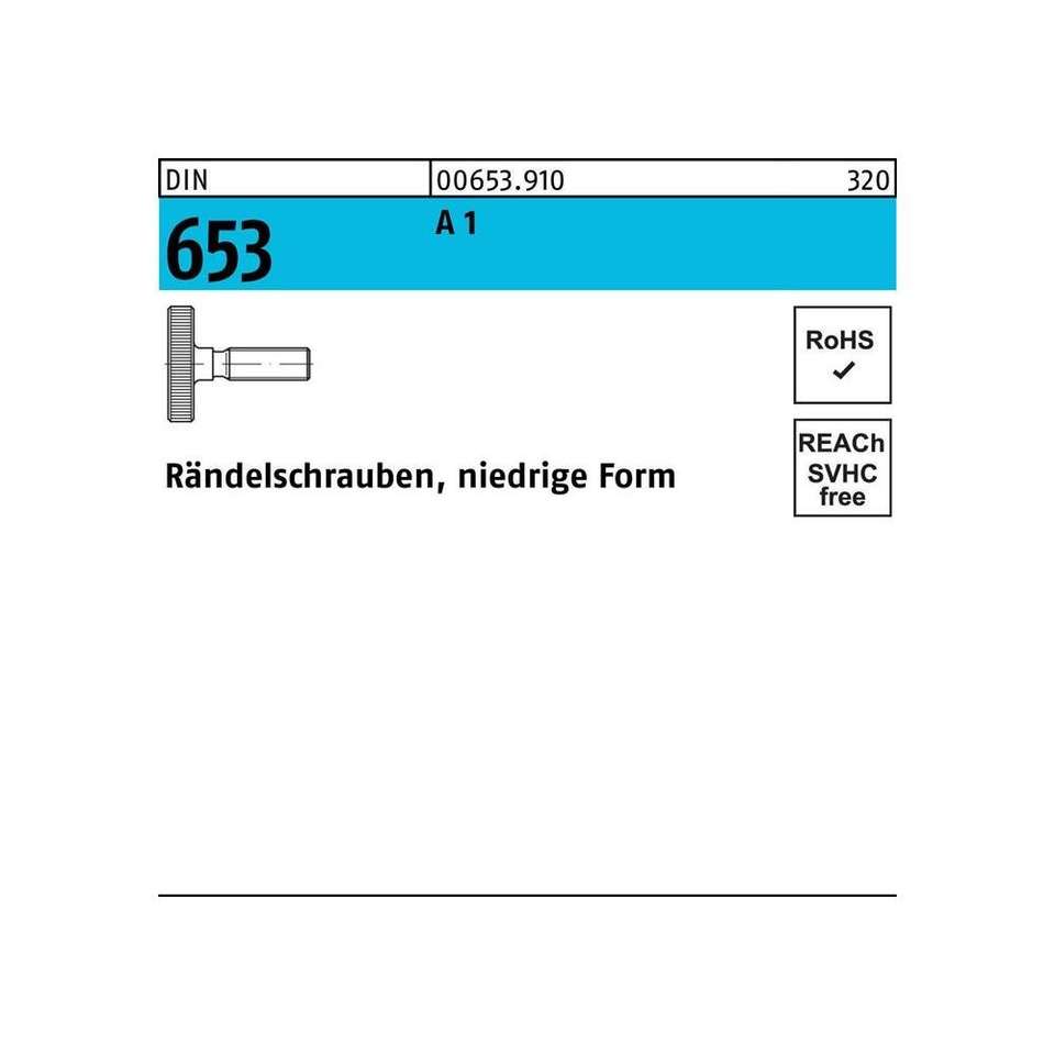 Tornillo moleteado de altura DIN 653 niedrige Form l 20 mm
