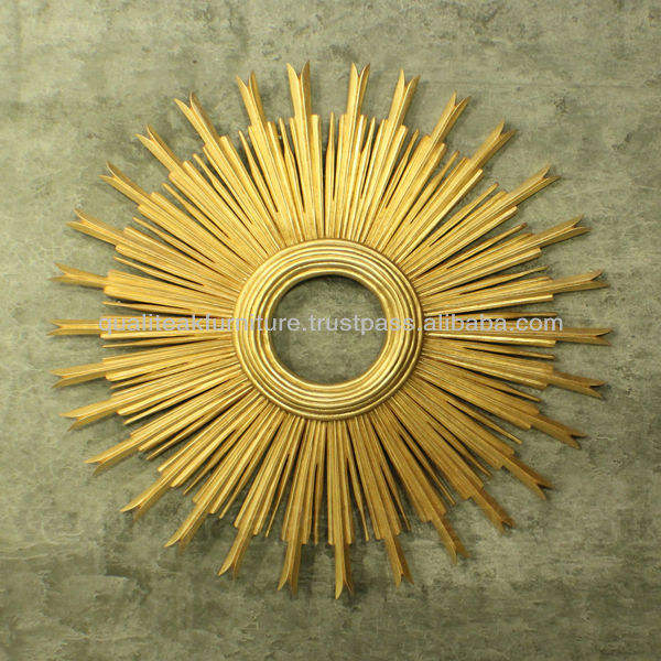 Espejo de pared de madera con marco de hoja de oro antiguo de la serie Helios, artículo decorativo elegante