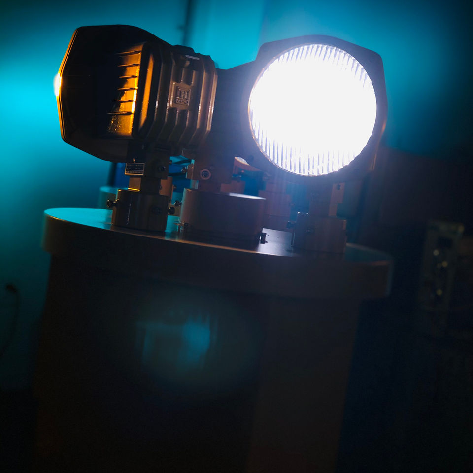 Baliza de rotación de helipuerto. La L-802H cuenta con tres lámparas de 150 vatios y tres lentes: transparente, aviación verde y amarillo.