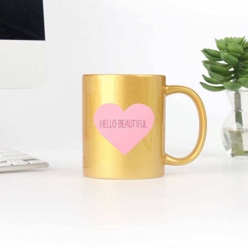 Taza de Oro Rosa y Plata con Diseño de Corazón Hermoso