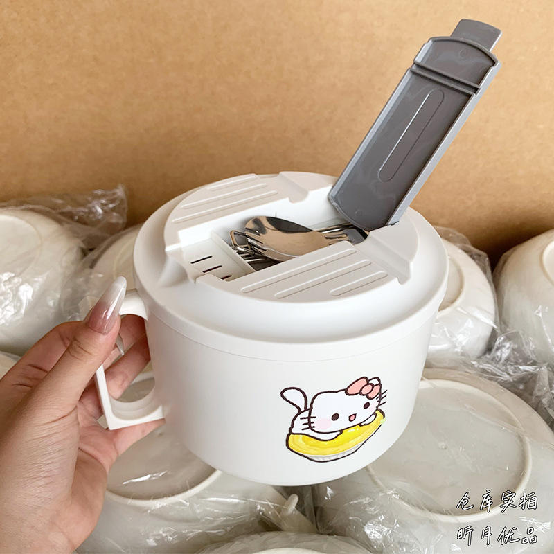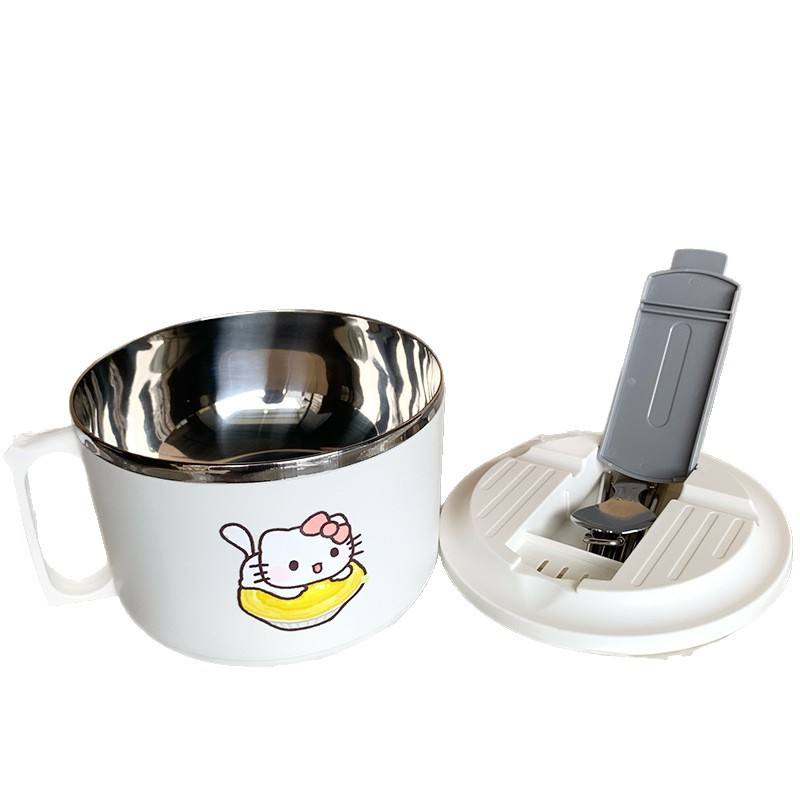Tazón de Fideos Instantáneos Hello Kitty con Tapa, Drenable y Resistente al Calor para Uso Doméstico