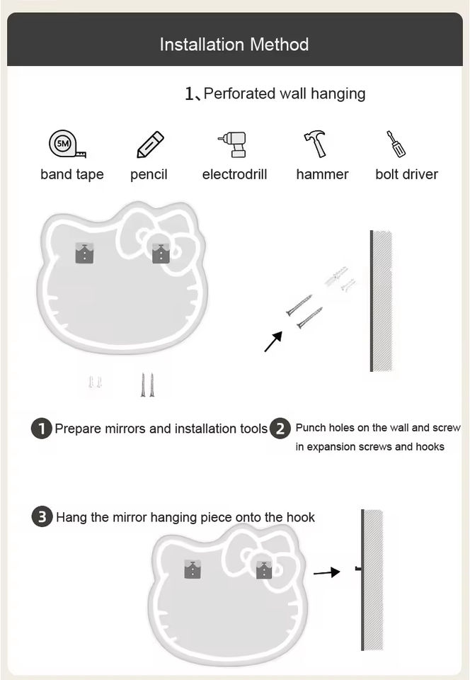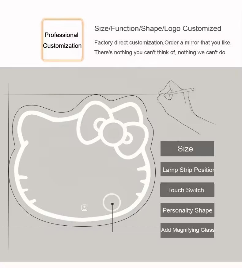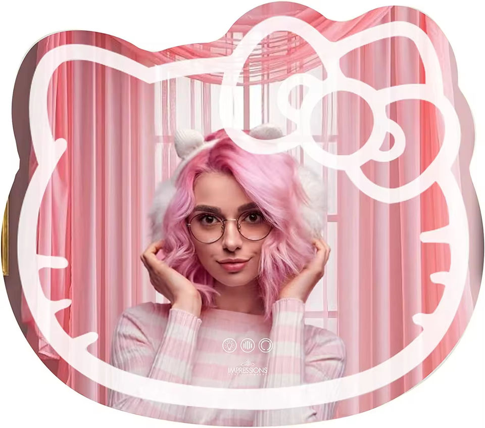 Espejo de baño LED inteligente de Hello Kitty, tocador colgante de pared con luz de relleno ajustable para decoración de hotel o hogar