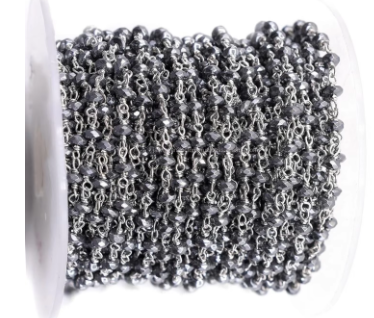 Nombre del producto:Cadena de rosario de alambre envuelto en plata de ley con hematita y baño de plata