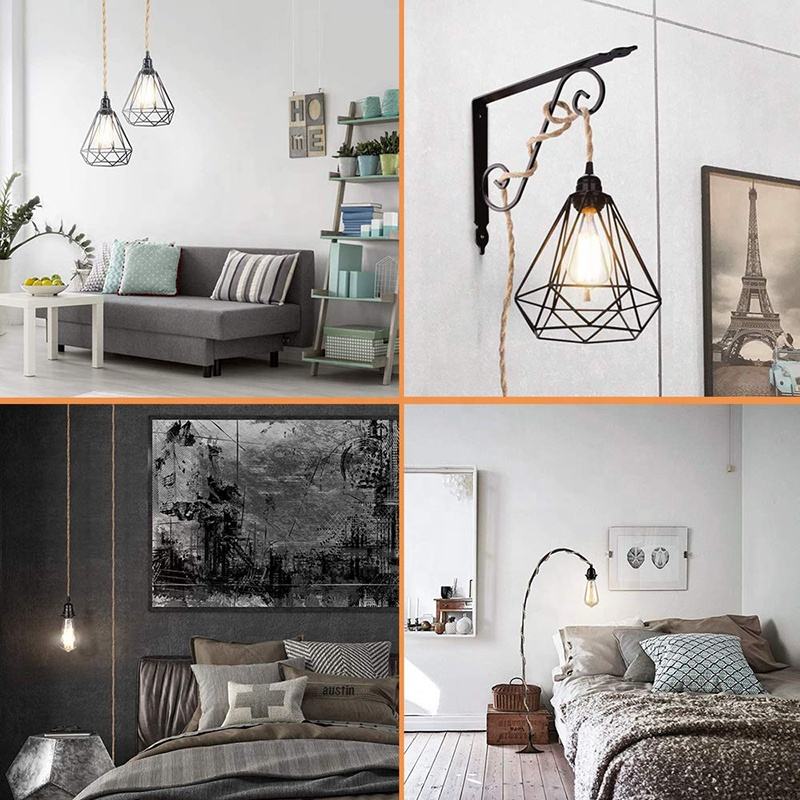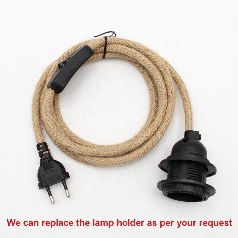 Cable de luz colgante de cuerda de cáñamo, cubierta de yute, Cable de alimentación E26 E27, lámpara Vintage