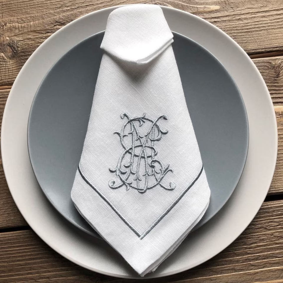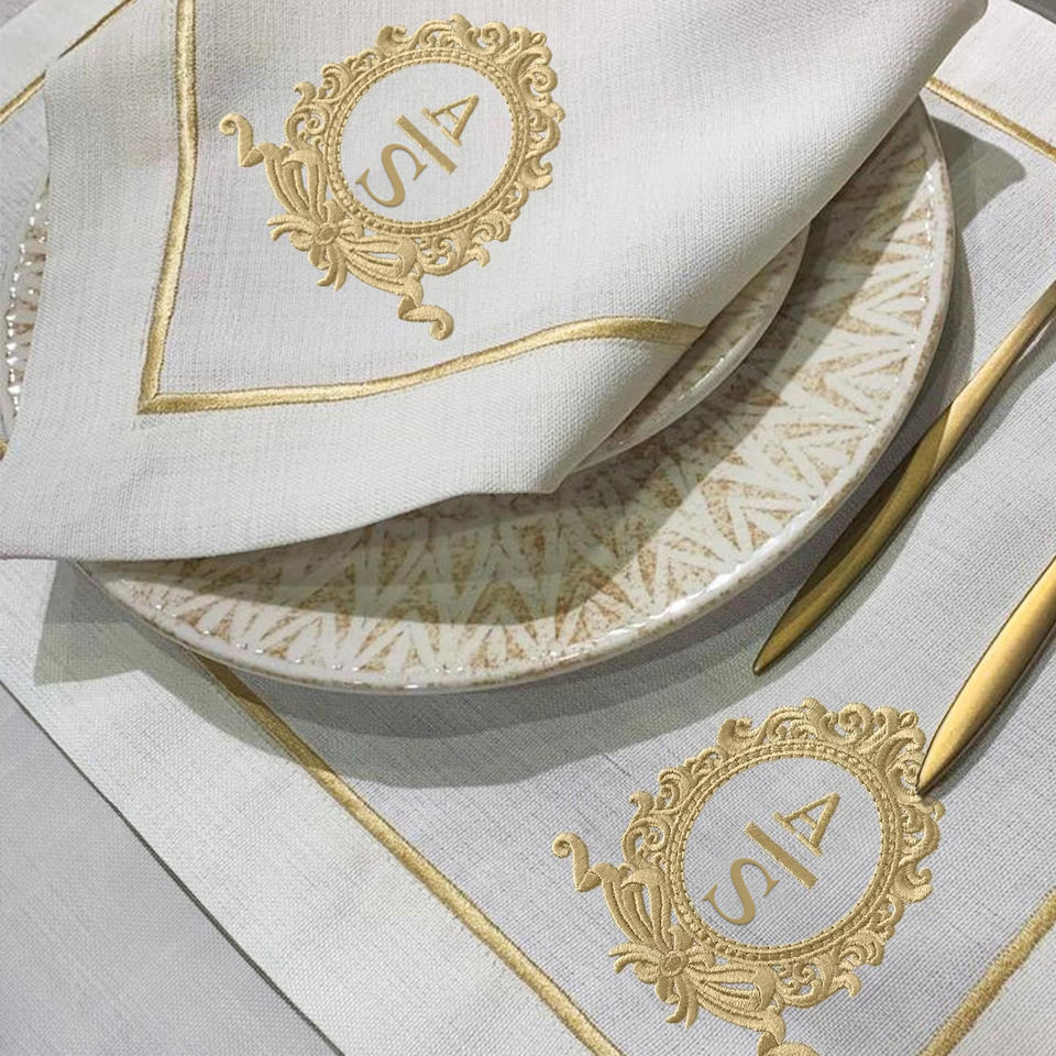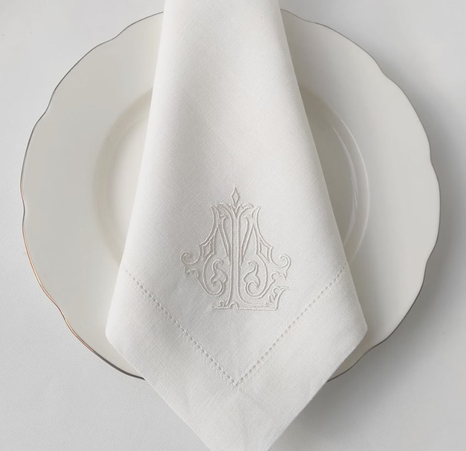 Servilleta de té Hemstitch, mesa de comedor fina blanca de alta calidad, lino, bordado a mano, servilletas personalizadas de estilo japonés con monograma