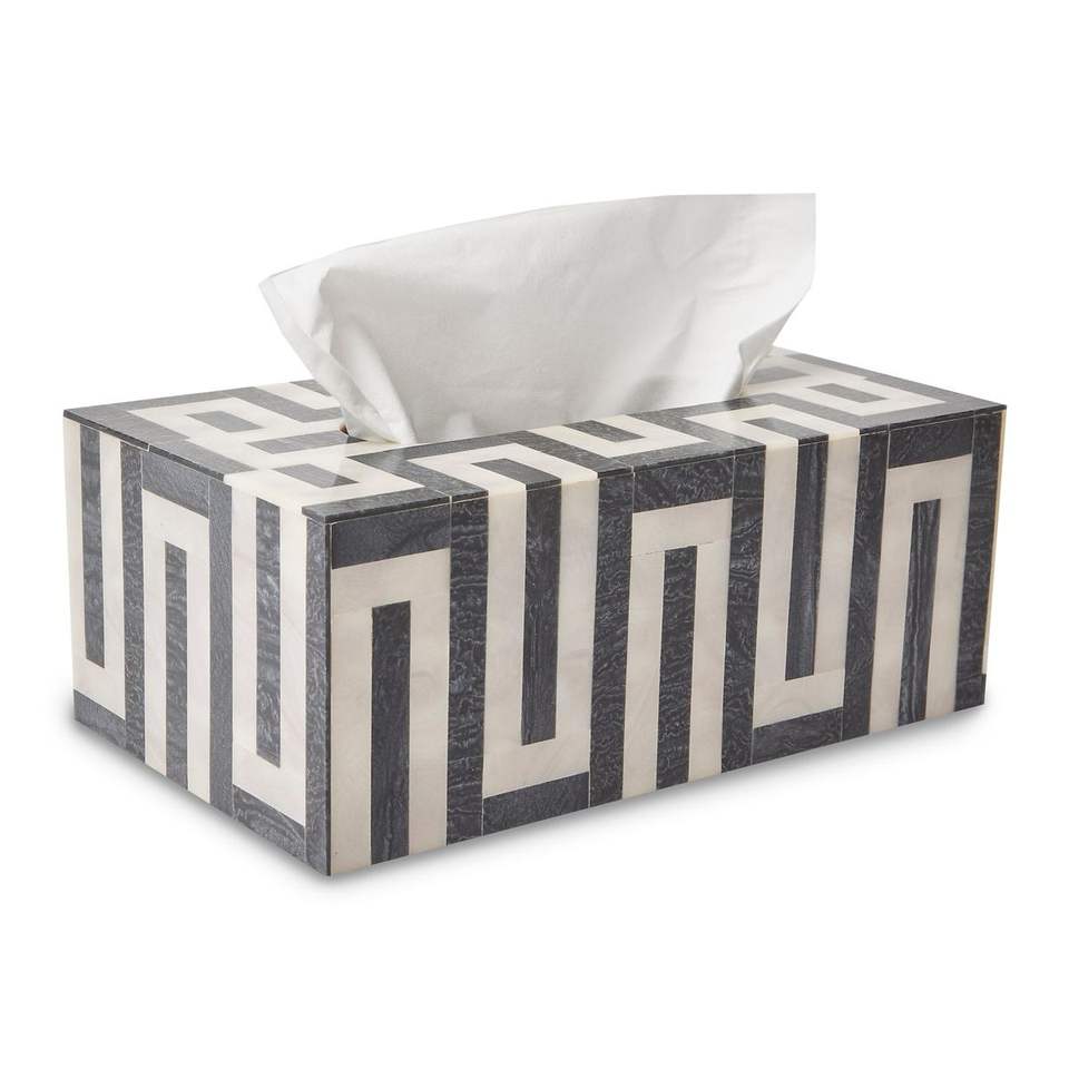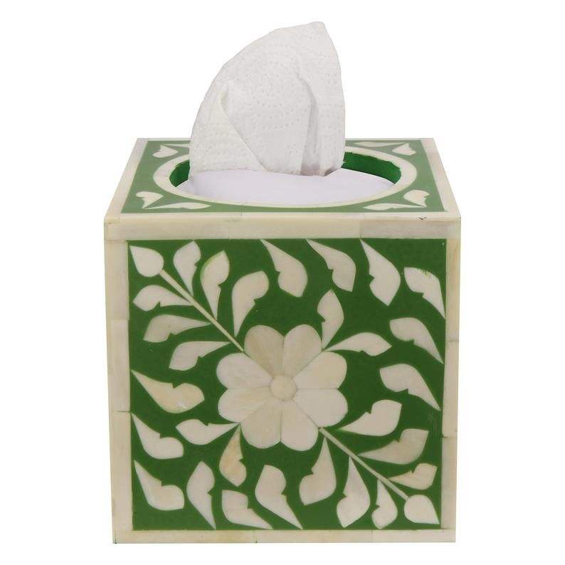 Caja de pañuelos de resina con incrustaciones de hueso