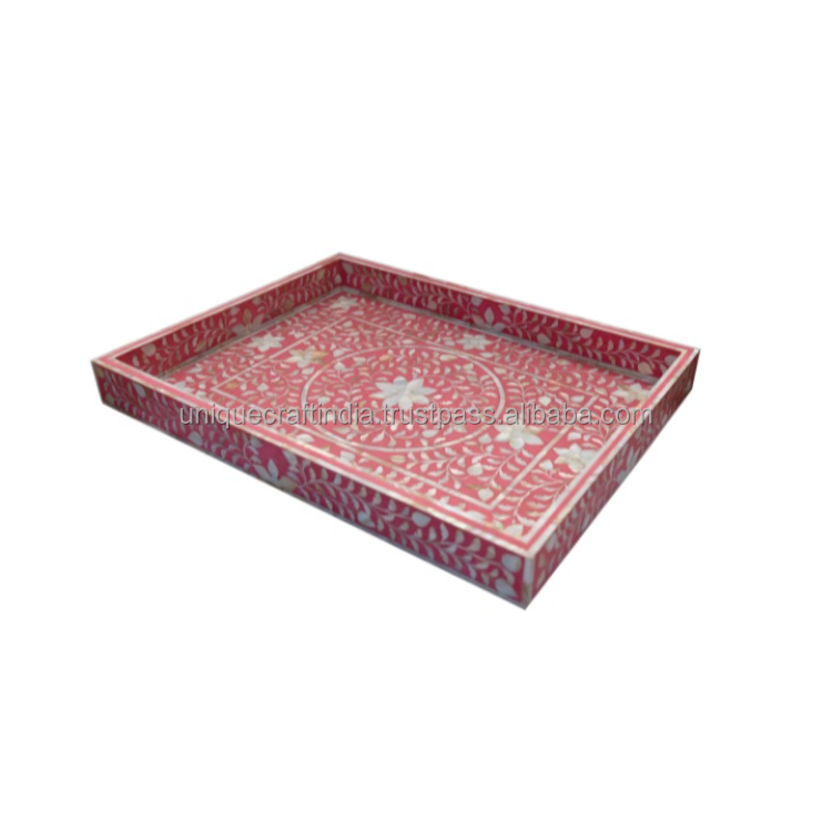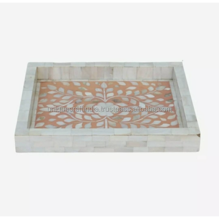 Bandeja Rectangular de madera Heritage Line con incrustaciones de nácar, pieza de decoración de madera hecha a mano para regalos de estilo antiguo para el hogar