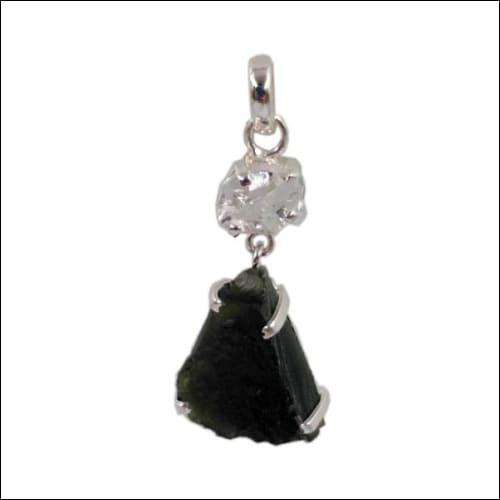 Colgante de plata Herkimer y moldavita Colgante de plata 925 Colgante de piedras preciosas naturales