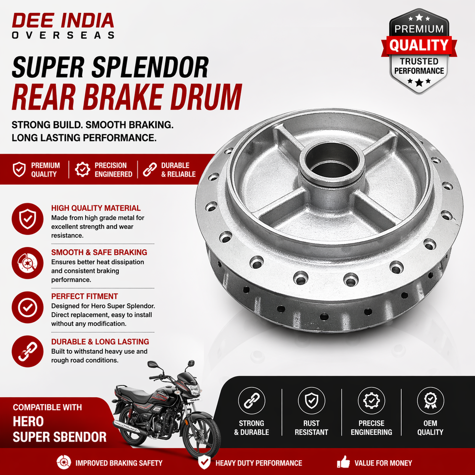 Tambor de Freno Trasero Hero Super Splendor | Conjunto de Tambor de Freno para Motocicleta | Repuesto de Freno Resistente y de Alta Durabilidad