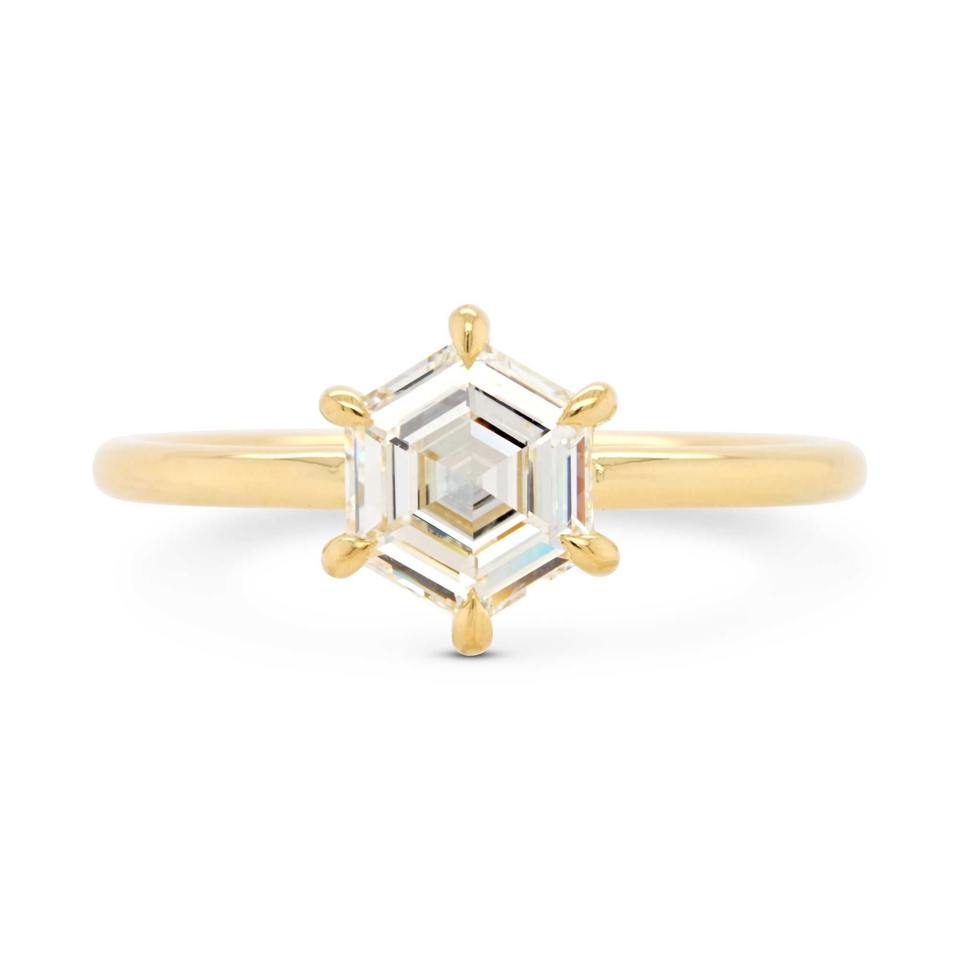 Anillo Solitario de Diamante Cultivado en Laboratorio con Forma Hexagonal de 1.35 Ct, Diamante HPHT, Oro Amarillo, Anillo de Compromiso, Forma Hexagonal Única, Propuesta de Matrimonio