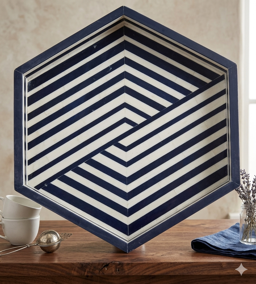 Bandeja de Servir Hexagonal de Resina Hecha a Mano, Color Personalizado, Tamaño Personalizado para Hogares, Hoteles, Restaurantes, Platos de Café, Té, Frutas y Dulces