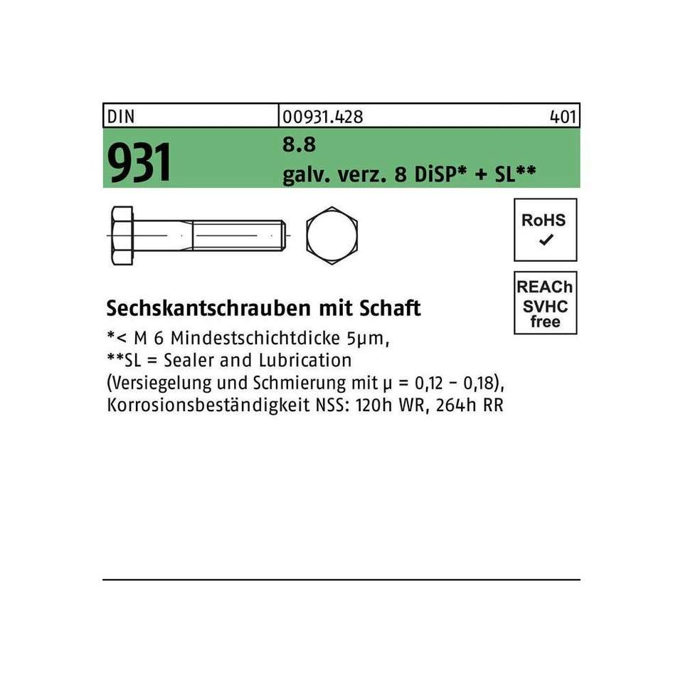 Tornillo hexagonal DIN 931x120mm