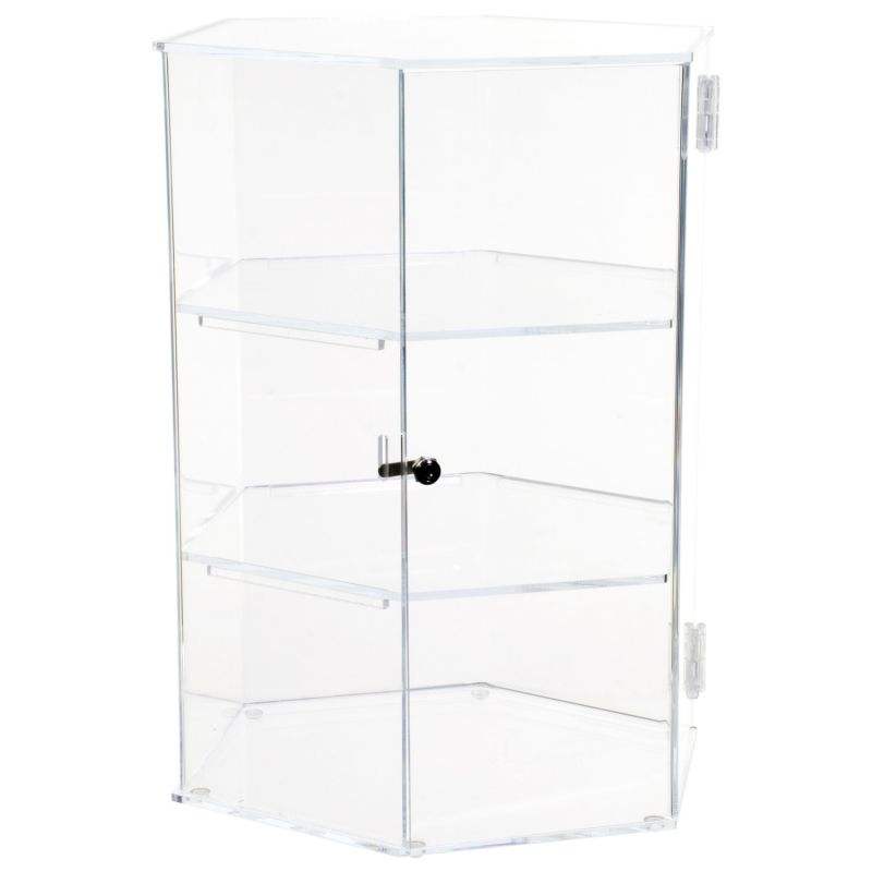 Hexagonal 2 estantes Bloqueo Base giratoria Anillo de reloj Caja de exhibición de mostrador de acrílico de vidrio Caja: bolsa Opp en el cartón o paquete personalizado