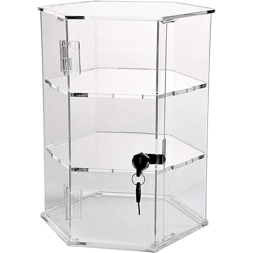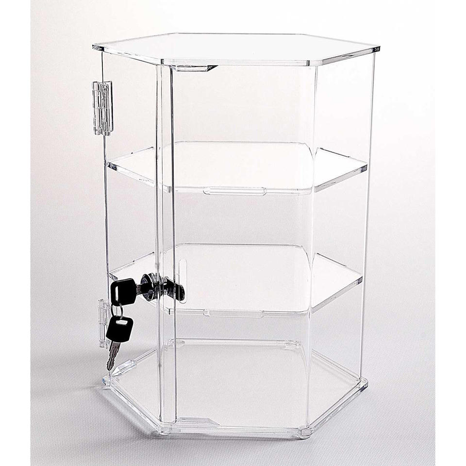 Caja de exhibición para mostrador de acrílico, Base giratoria de bloqueo, Hexagonal, 2 estantes, anillo de reloj