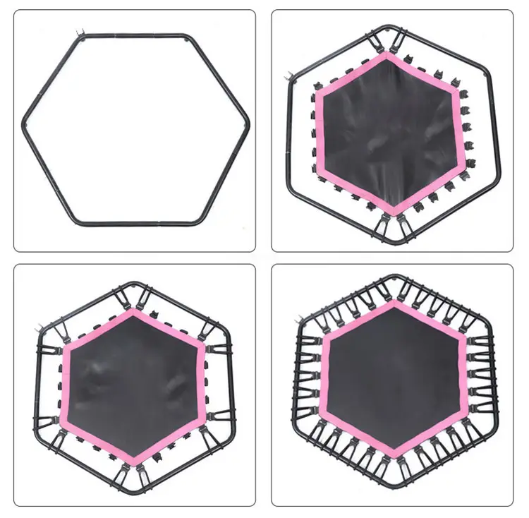 Trampolín Hexagonal para niños, cama de salto de cuerda elástica con pasamanos, trampolín de Fitness profesional para adultos para uso doméstico