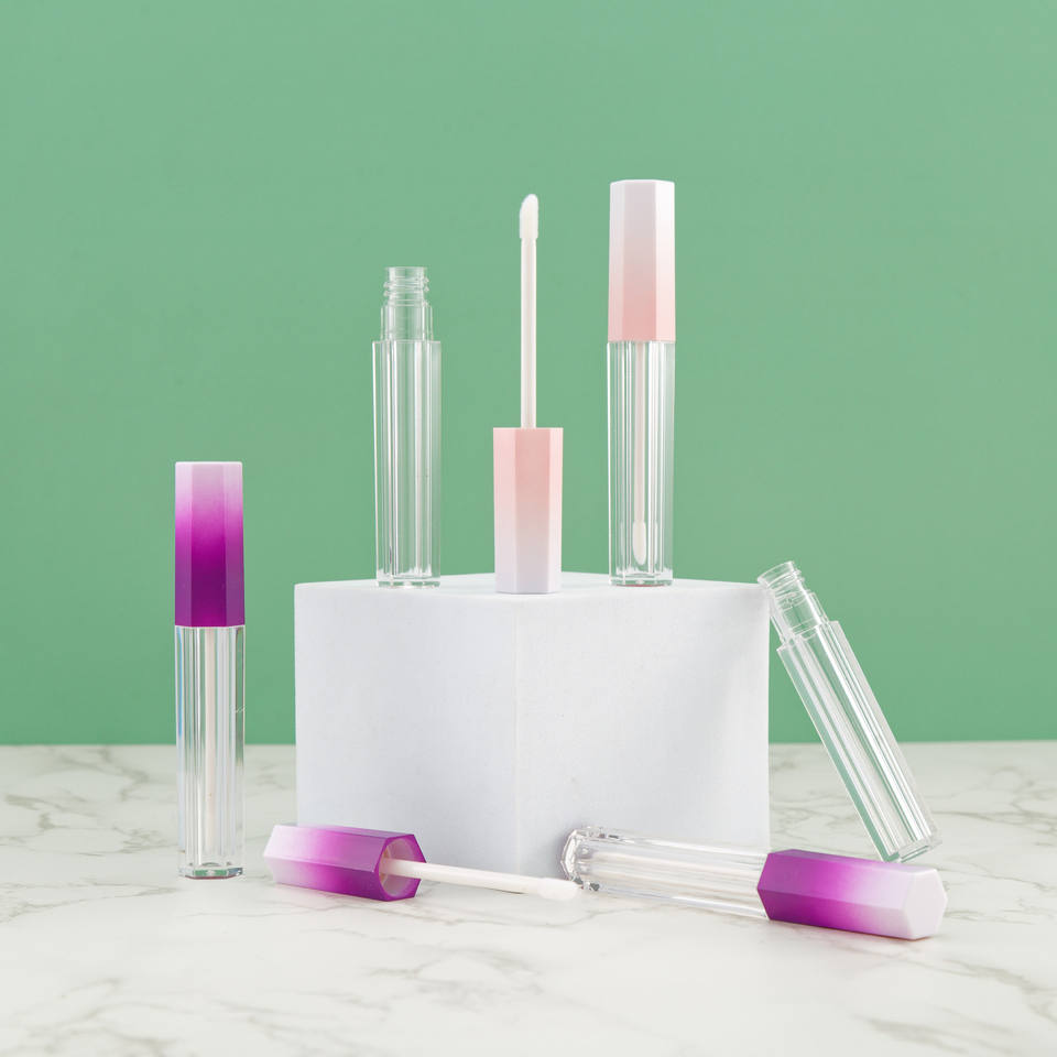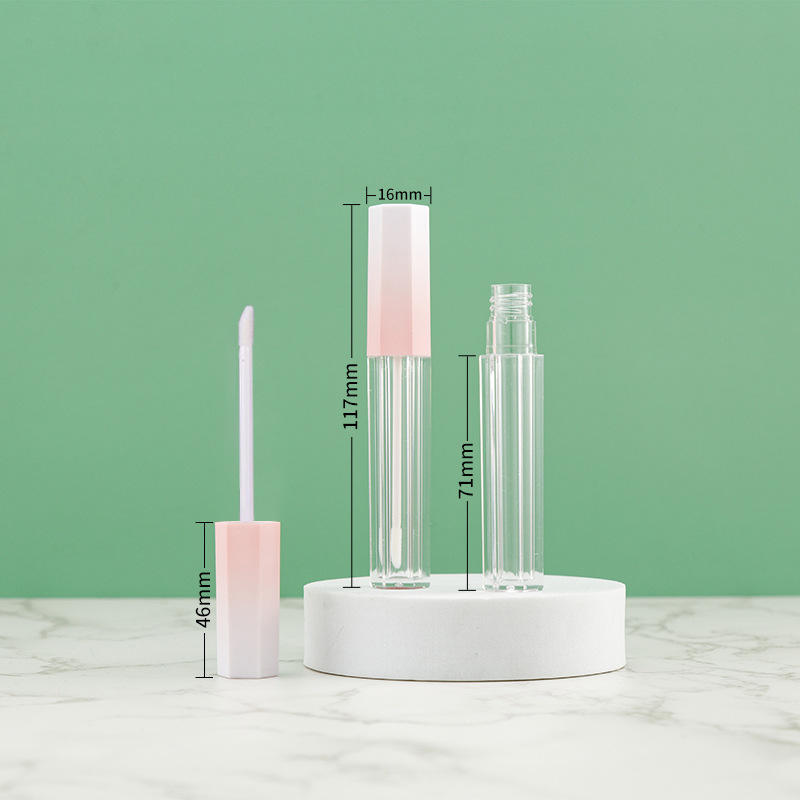 Tubo Vacío Hexagonal para Brillo Labial con Degradado, Botella Transparente Recargable de 5ml con Pincel, Envase Cosmético