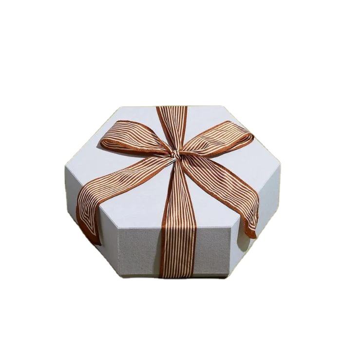 Cinta Hexagonal Caja pequeña de dulces de chocolate Snack Anacardos Embalaje White Planet Bonbon Caja de huevos de chocolate