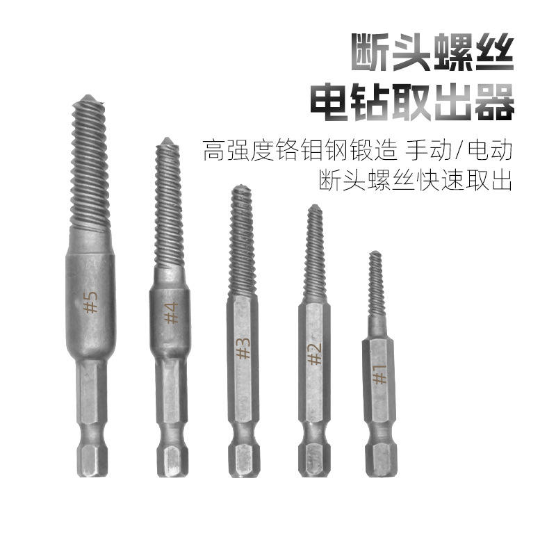 Hexagonal Shank Broken Screw Extractor Spiral Flute Metric Steel Industrial Damaged Screw Removal Tool For Electric Drill