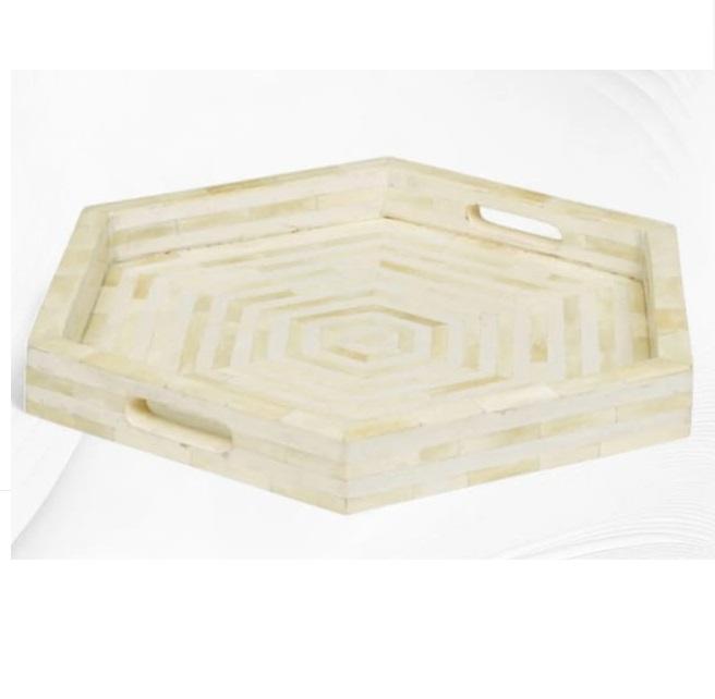 Bandeja Hexagonal con Incrustaciones de Hueso, Multifuncional, para Catering, Servir Té, Café, Desayuno, Platos para Servir