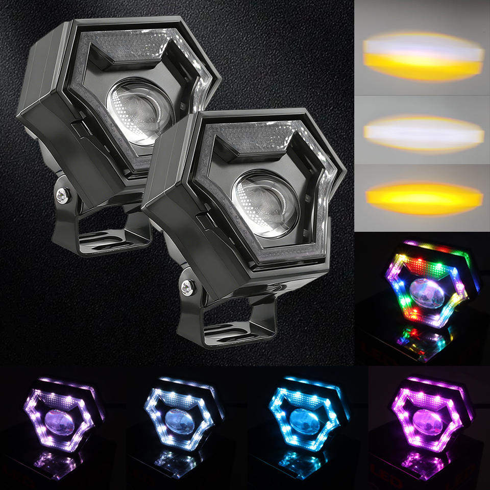 Focos Hexagonales para Motocicleta, Faros Delanteros de Doble Color RGB, Luces Antiniebla IP67 Impermeables para Autos y Camiones, Modelo MO-237