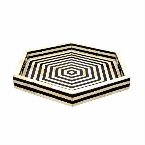 Bandeja para servir con incrustaciones de hueso con diseño de rayas y forma hexagonal para mesa de centro, bandeja para servir sobre encimera del fabricante indio