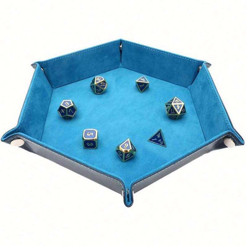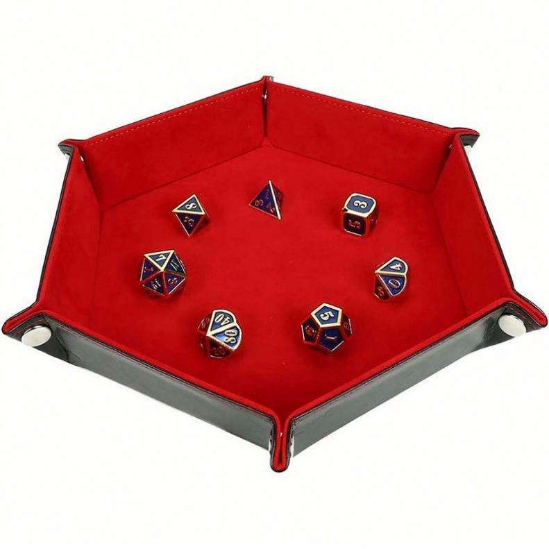 Bandeja hexagonal de terciopelo para dados, caja de almacenamiento plegable, bandeja de PU, caja de almacenamiento de escritorio de terciopelo