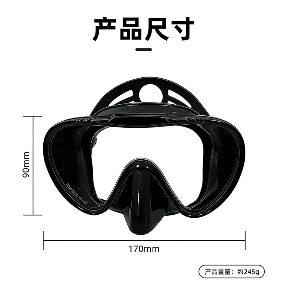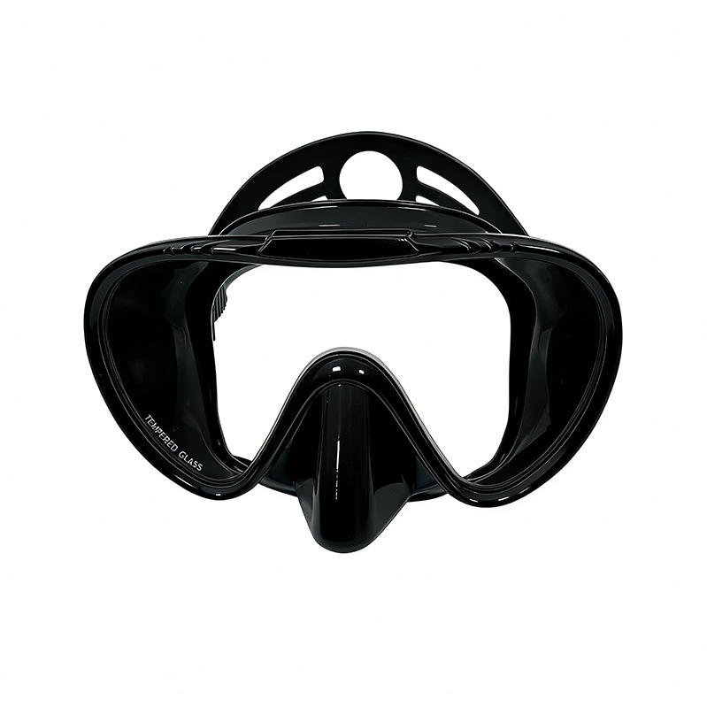 Máscara de Buceo HhaoSport con Marco Grande, Cristal Templado Negro, Talla Única, Antivaho e Impermeable