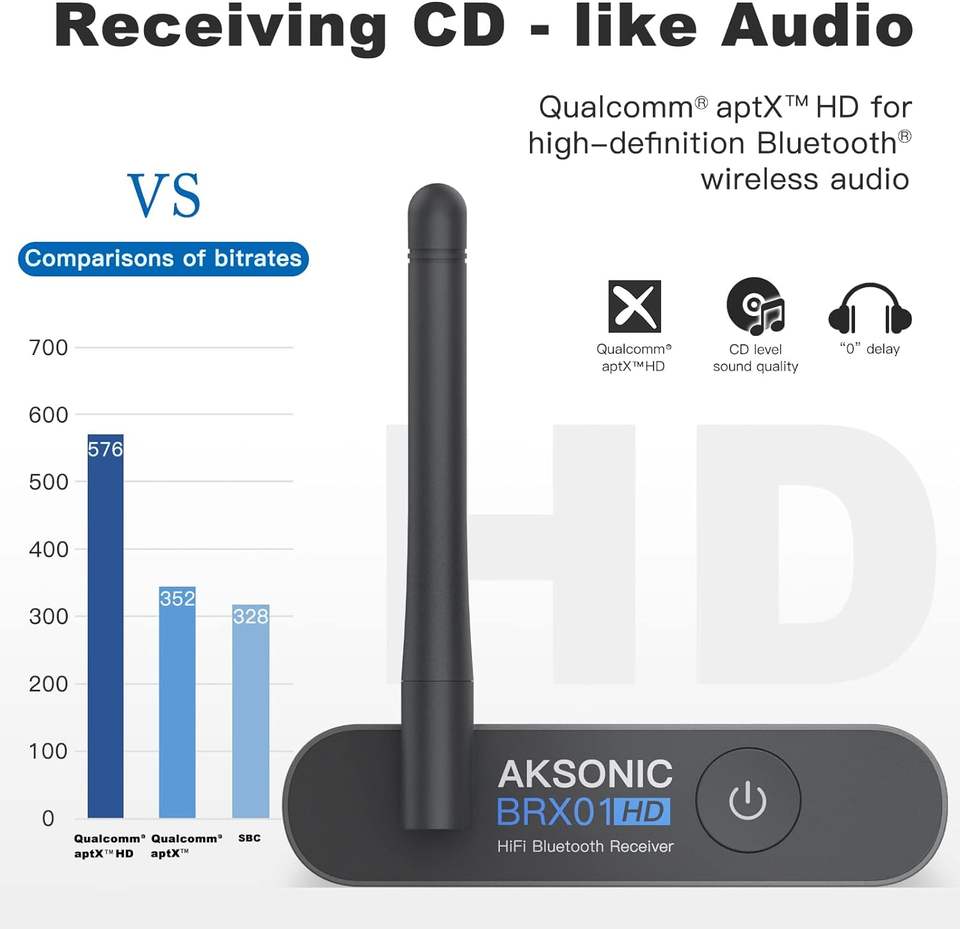 Adaptador de Audio Hi-Fi Audiophile DAC AptX HD de largo alcance inalámbrico para Bluetooth 5,2 receptor de música para divisor de Audio doméstico