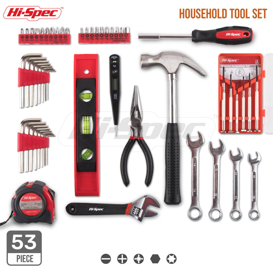 Juego de Herramientas de Alta Calidad de 53 Piezas en Caja de Acero al Carbono para Mantenimiento del Hogar, Oficina y Renovaciones