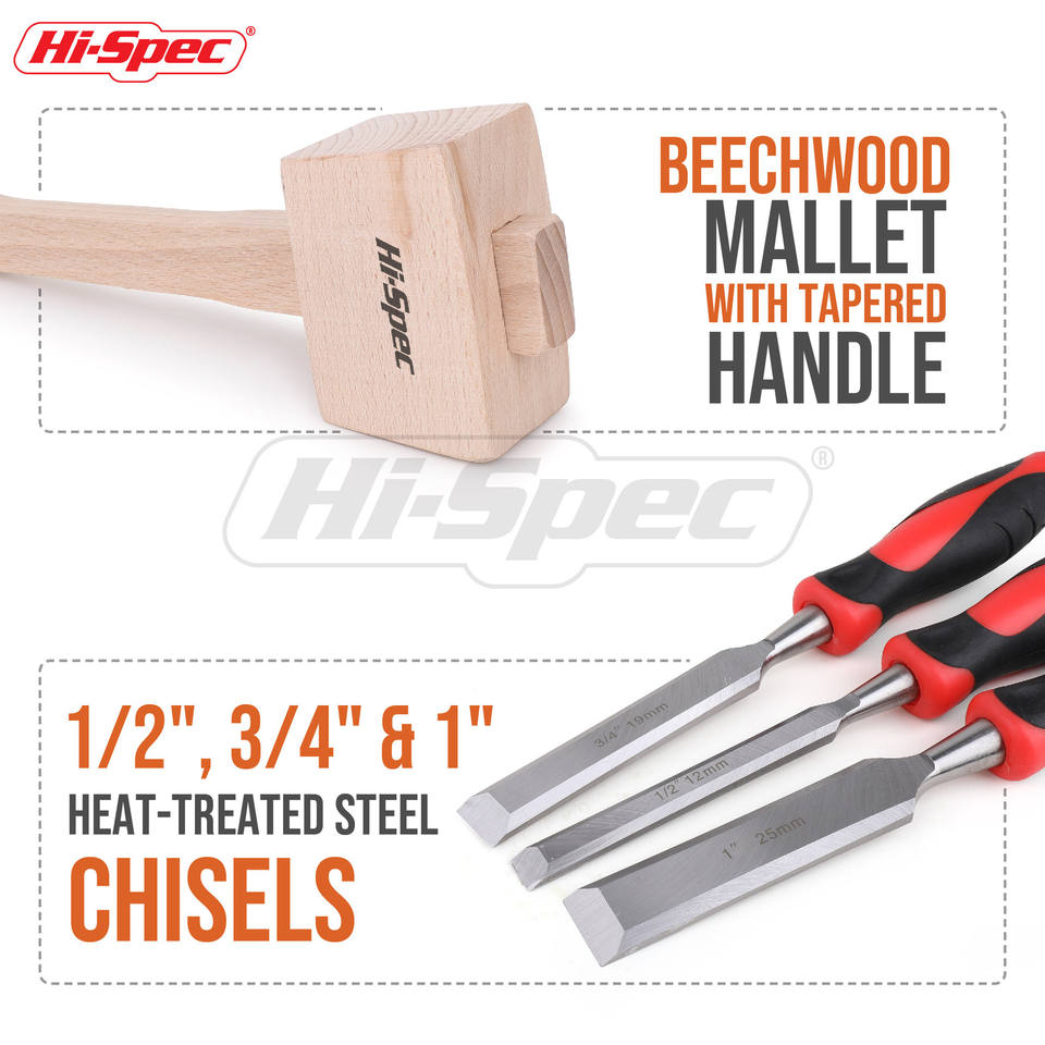 Hi-Spec Carving Chisel Set 1 3/4 1/2 Inch Woodworking Tools With Wooden Mallet