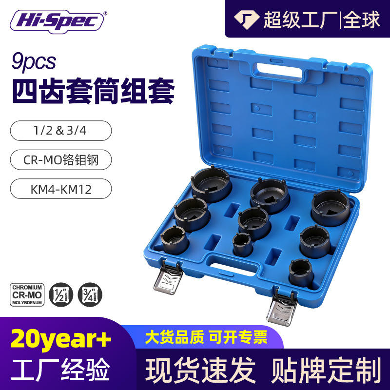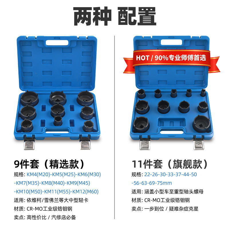 Juego de 9 Piezas de Manguitos para Tuercas de Rodamiento de Cuatro Dientes de Alta Especificación para Vehículos Chevrolet Iveco, Kit de Herramientas de Grado Industrial