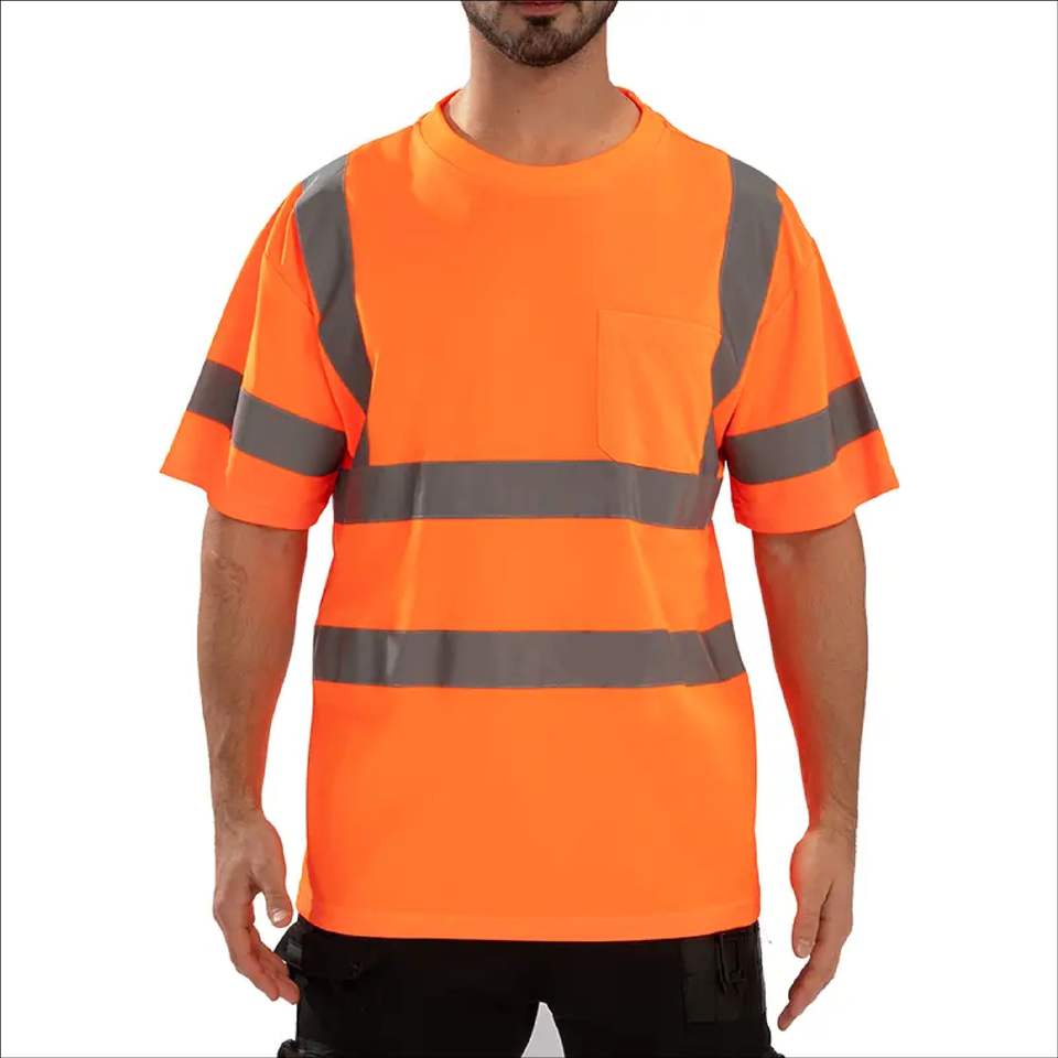 Camisetas de Manga Corta de Alta Visibilidad para Construcción, Reflectantes, Color Naranja de Seguridad, Fabricación de Ropa de Trabajo