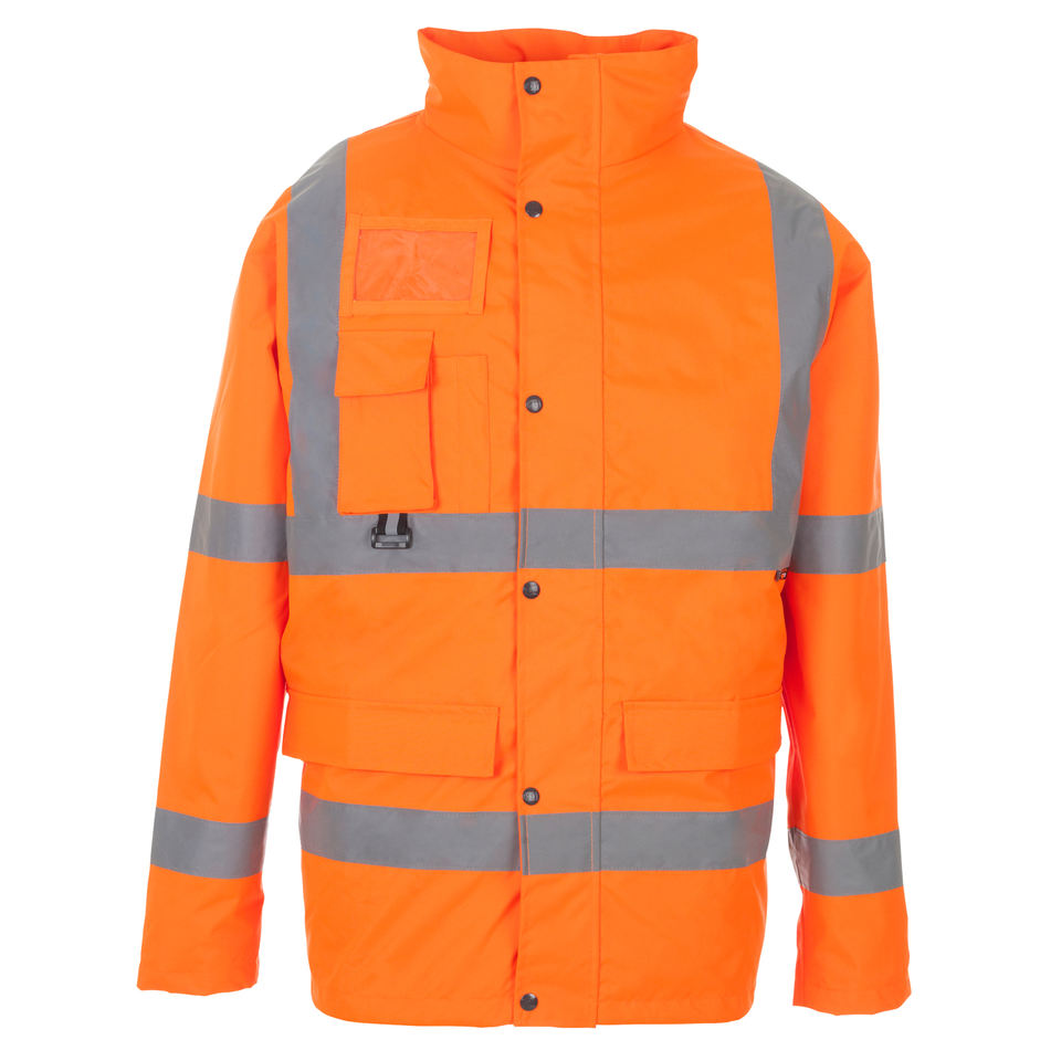 Chaqueta de Trabajo Acolchada de Poliéster de Alta Visibilidad para Hombre, Uniforme de Trabajo Personalizado, Naranja Fluorescente, Cinta Reflectante de Seguridad, Alta Visibilidad