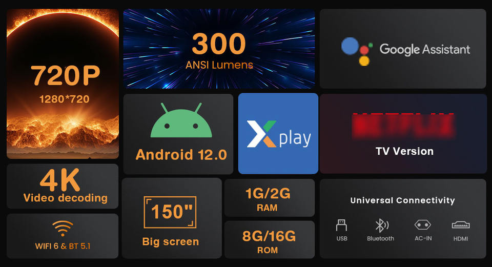 HiCyber Mg50 Pro 4K Mini proyector portátil inteligente Android 12,0 Full HD 1080P LED 2G RAM Home Movie Theater Video Projector