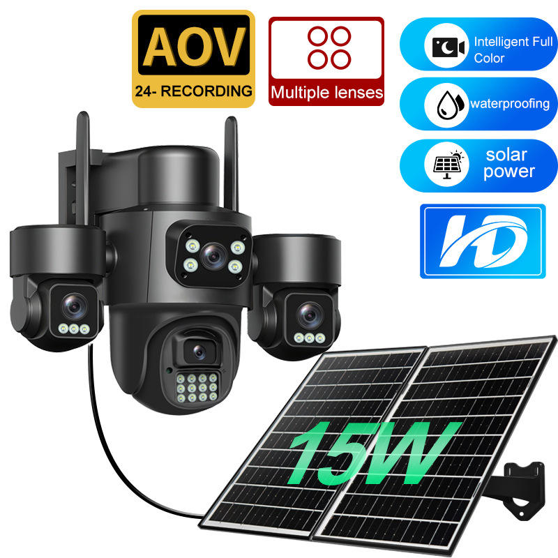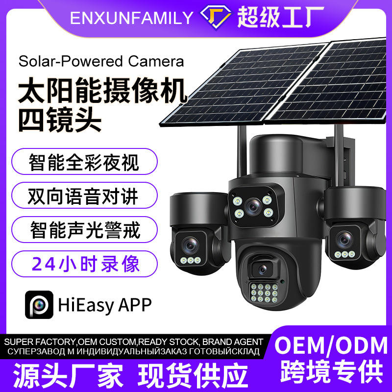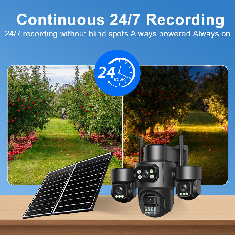 Cámara de Vigilancia Solar HiEasy de 8MP 4G con Cuatro Lentes, Visión Nocturna, Sistema de Seguridad para Exteriores con Almacenamiento en la Nube