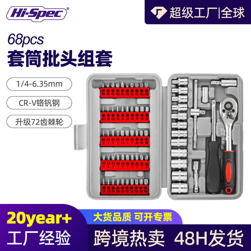 Juego de llaves de vaso HiSpec de 1/4 pulgada con mango en T, puntas de destornillador y llave dinamométrica para herramientas de reparación DIY