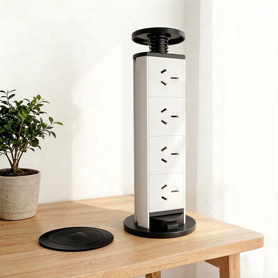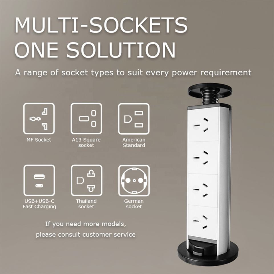 Enchufe de Corriente Empotrado Oculto con Sistema de Elevación Manual, Adaptador de Enchufe AU y Cable de Carga USB Tipo C y Tipo A de 1.5M