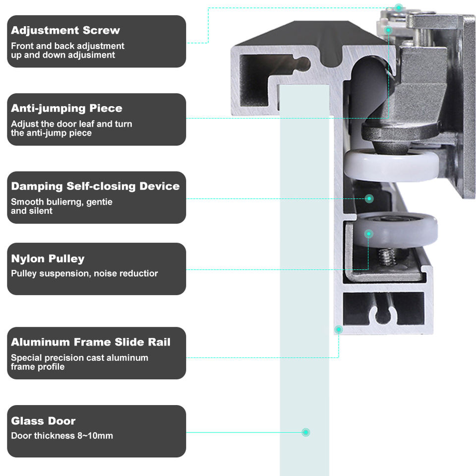 Sistema de Puertas Corredizas de Vidrio Invisibles Hidden Runners, Accesorios para Puertas Mágicas de Bolsillo, Riel Oculto, Puertas de Cierre Suave para el Hogar