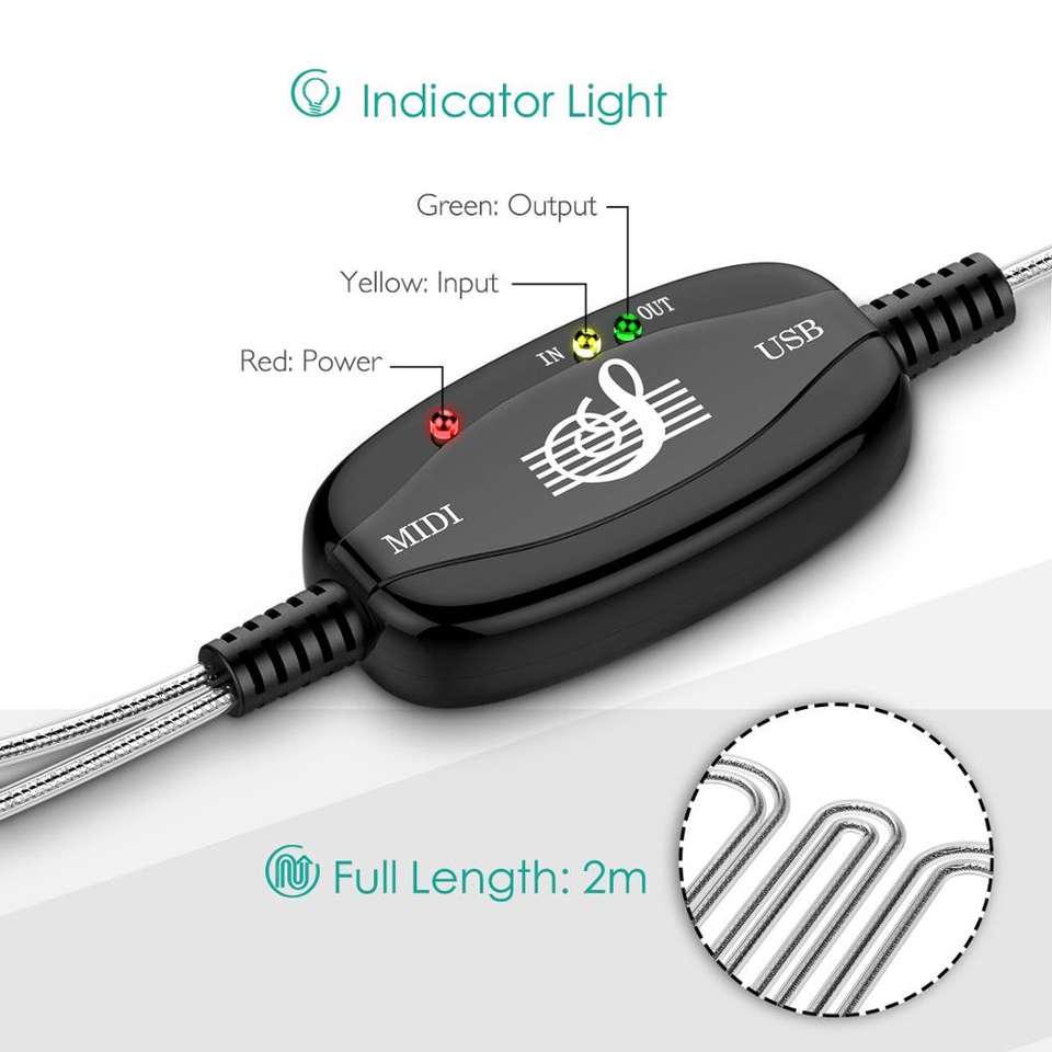 Cable Convertidor USB a MIDI Hifing, Adaptador de PC a Teclado Musical, Cable MIDI para Sintetizador de Teclado