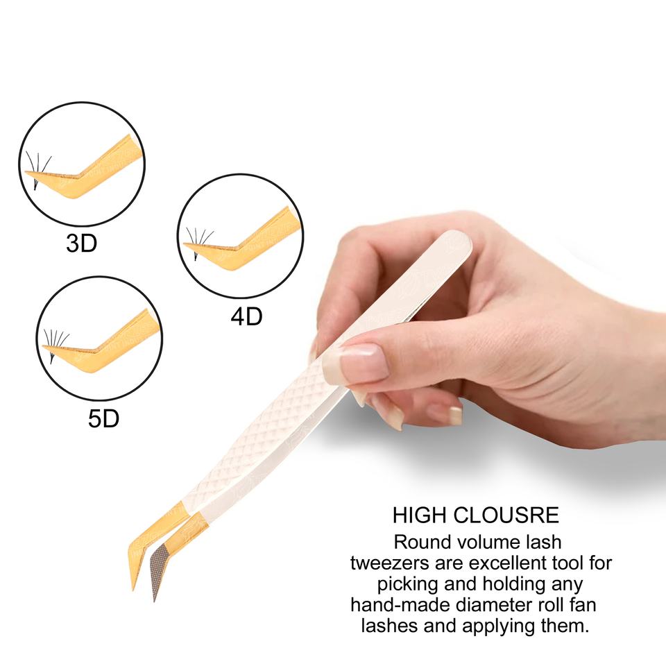 Pinzas de Acero Inoxidable Antiestáticas de Alta Precisión para Artistas de Pestañas, Pinzas Redondas para Extensión de Pestañas de Volumen