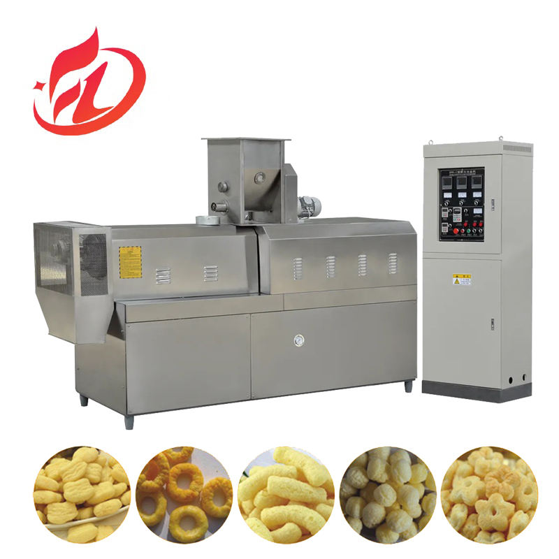 Bola de maíz de alta precisión, círculo para inflar bocadillos, línea de producción de extrusora de doble tornillo, máquina para hacer bocadillos de maíz inflado