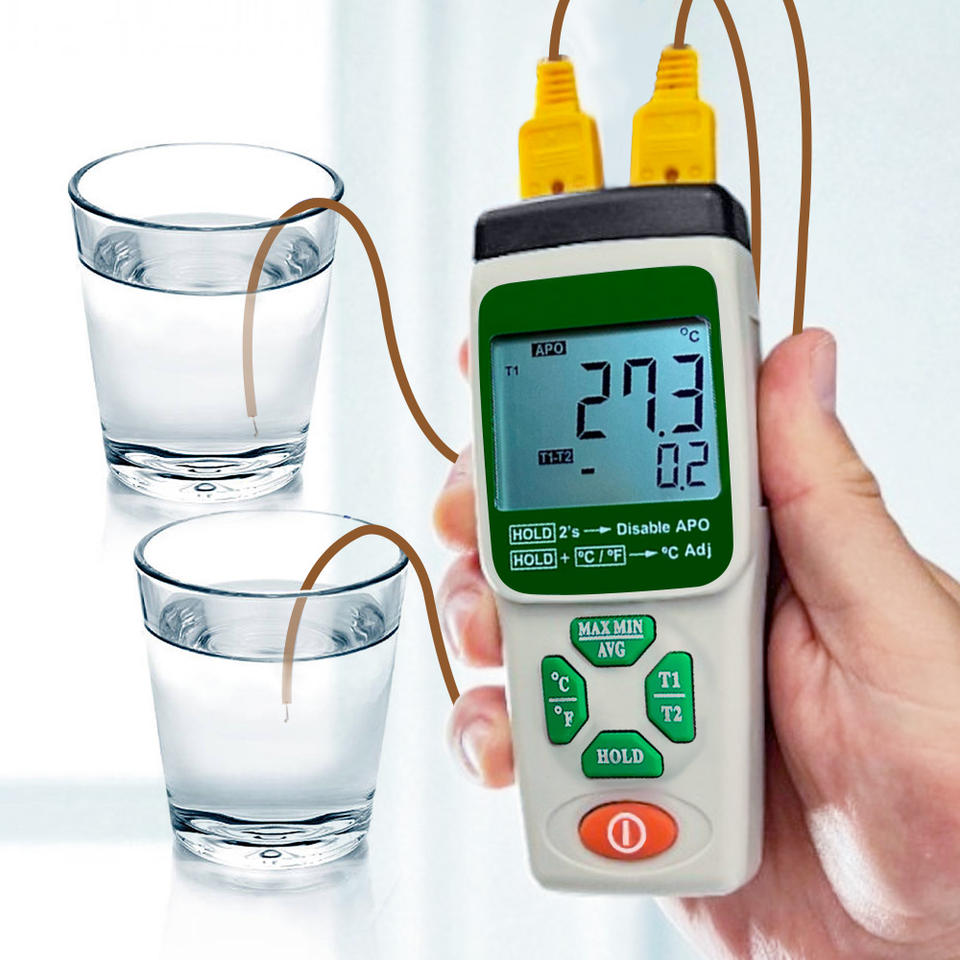 Termómetro de Doble Canal Tipo K de Alta Precisión | Medidor de Temperatura Diferencial Industrial Portátil T1-T2 (OEM Disponible)