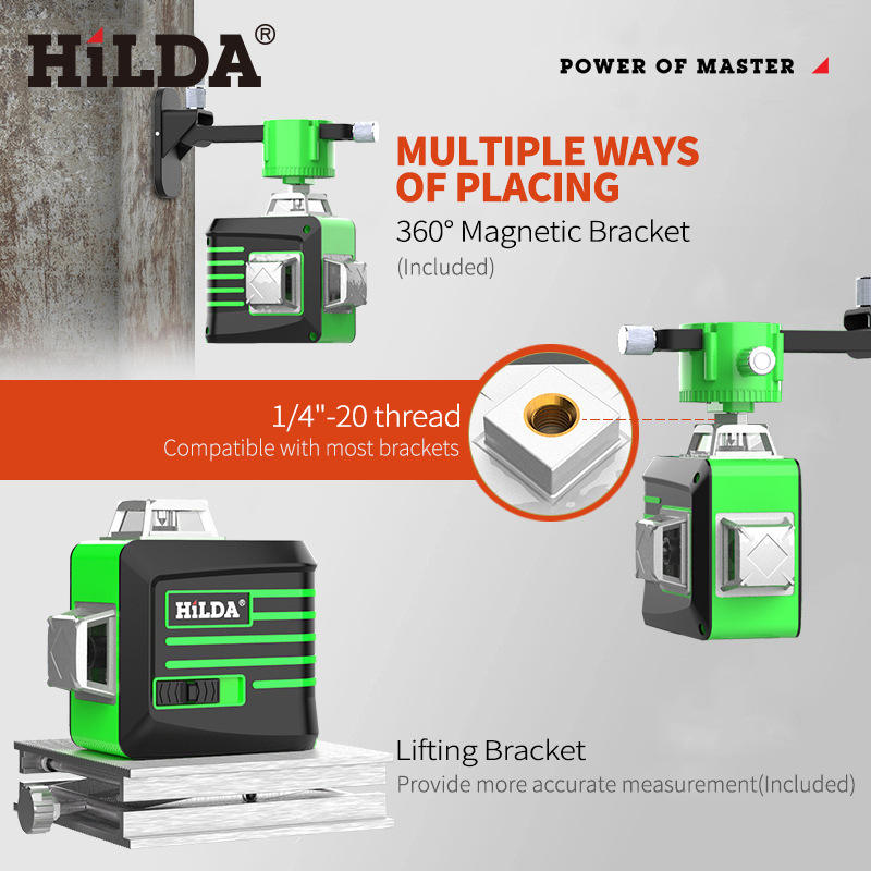 Nivel de láser de alta precisión, haz láser verde cruzado, 16 líneas, 360 grados, autonivelación, 4d, construcción rotativa automática, nivel láser