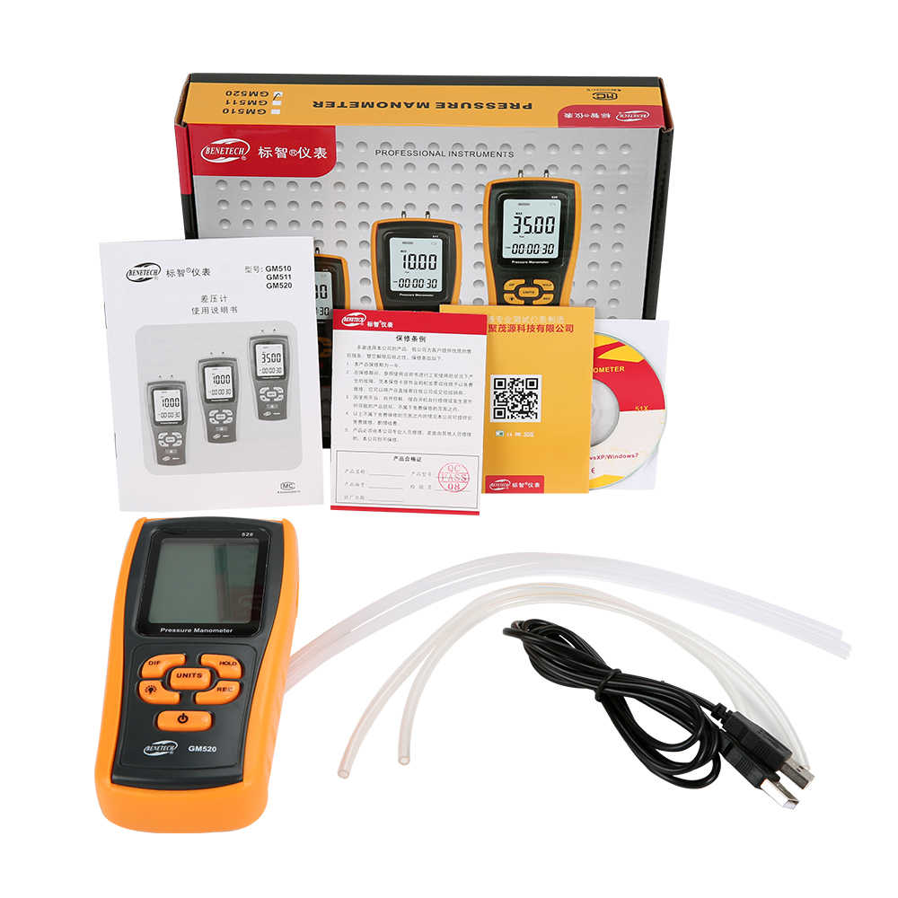 Manómetro Digital de Alta Precisión, Medidor de Presión de Aire, Kit de Medidor de Presión Diferencial de Neumáticos, Retención de Datos, Medidor de Presión +/- 35 Kpa