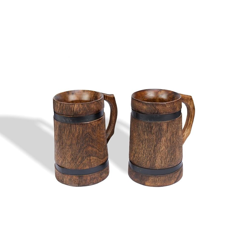 Jarra de cerveza hecha a mano de alta y clásica calidad, jarra de cerveza hecha a mano de madera con mango de madera, jarra de cerveza de madera