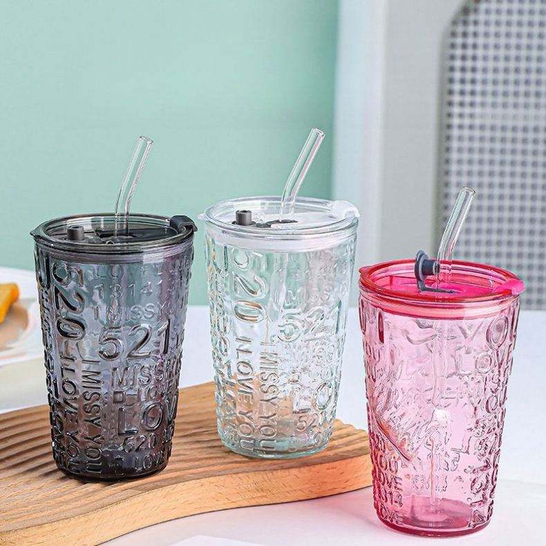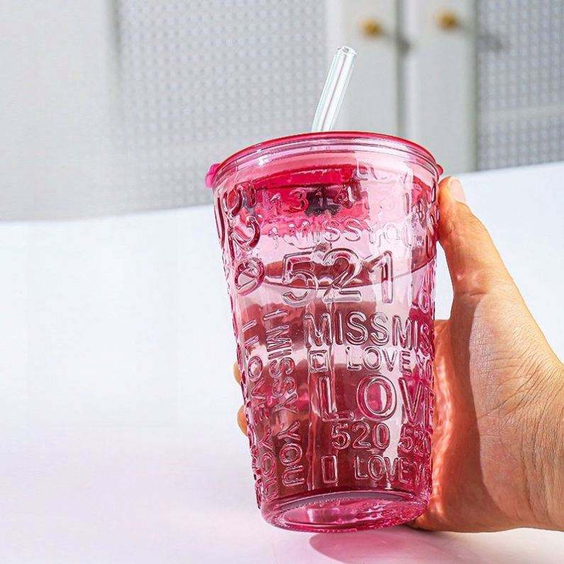 Vaso de Vidrio con Relieve Tridimensional Horizontal de Alta Apariencia, Vaso Doble para Bebidas, Botella de Agua Moderna y Bonita, Vaso para Jugo