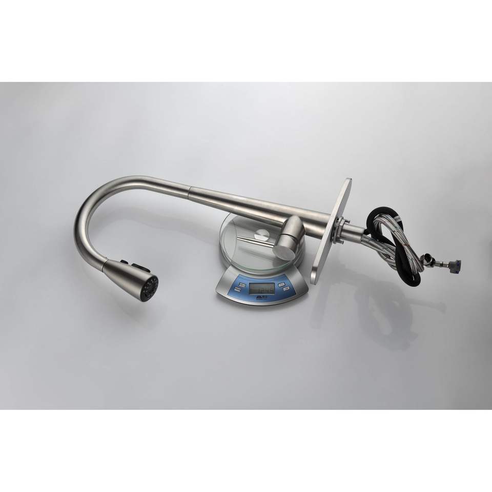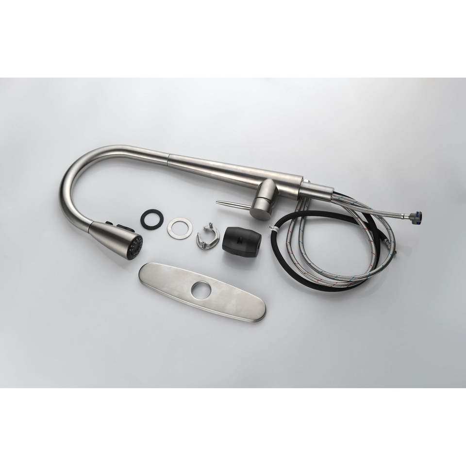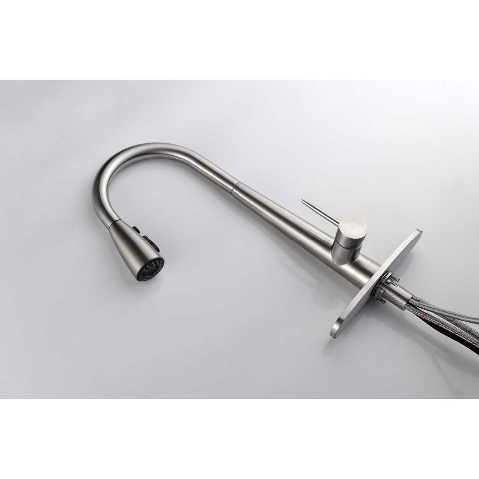 Grifo de cocina monomando de arco alto con rociador extraíble, marca Mo, de níquel cepillado, para fregadero comercial