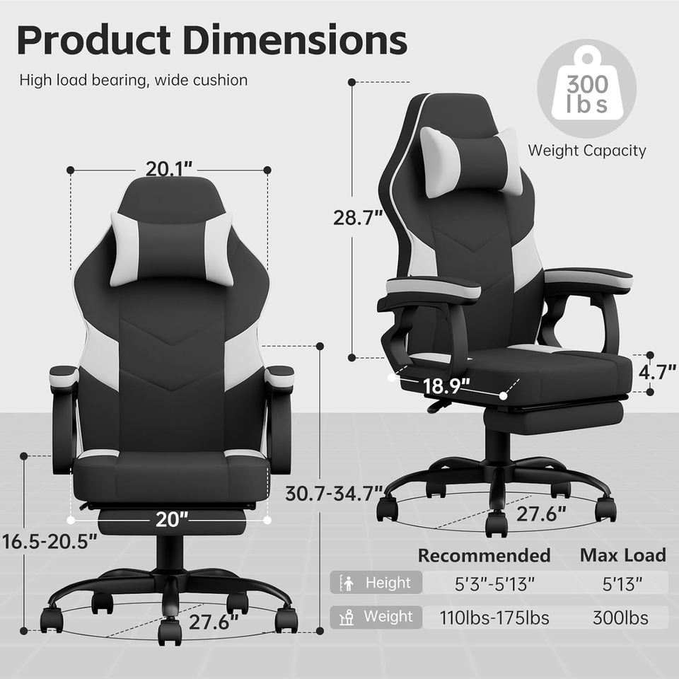 Silla de juegos de carreras ergonómica con respaldo alto extensible con reposabrazos deslizantes y soporte lumbar para sala de estar y uso de computadora